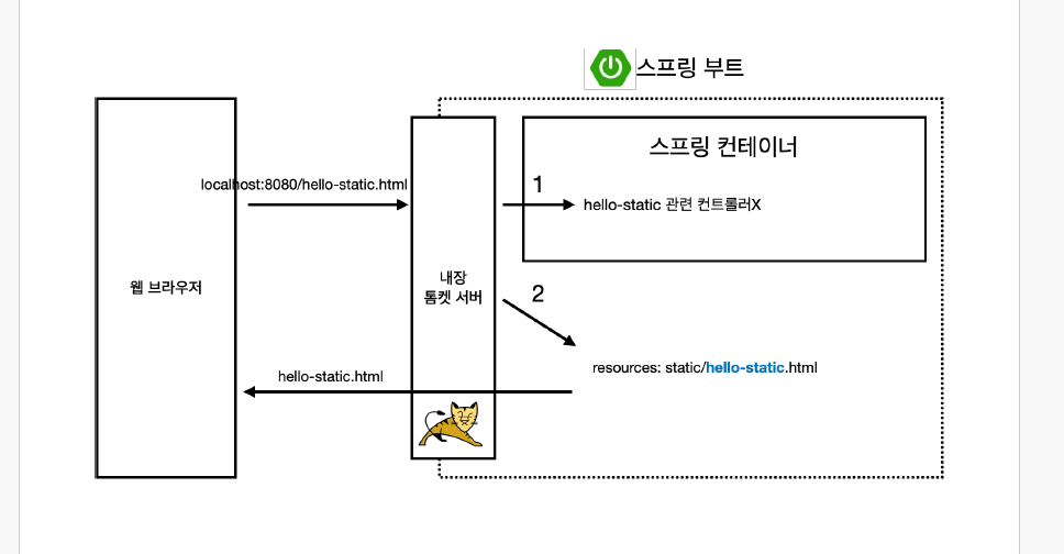 정적인 콘텐츠 즉, 이미 완성이 되어있는 HTML과 같은 문서를 브라우저로 전달합니다.