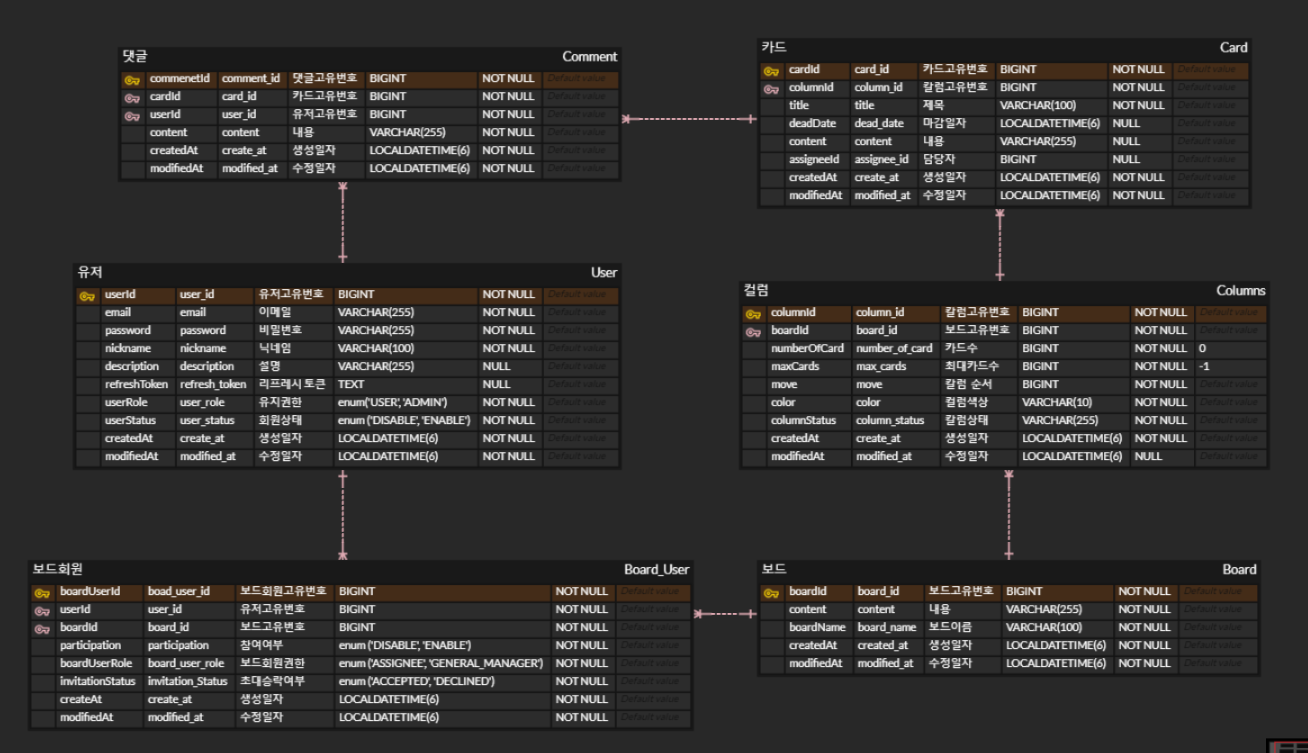 -요구사항을 자세히 읽어보니 담당자는 없을수도(null) 있어서 연결을 하지않고 Id값을 가지고 필요할때 보드회원을 찾기로함