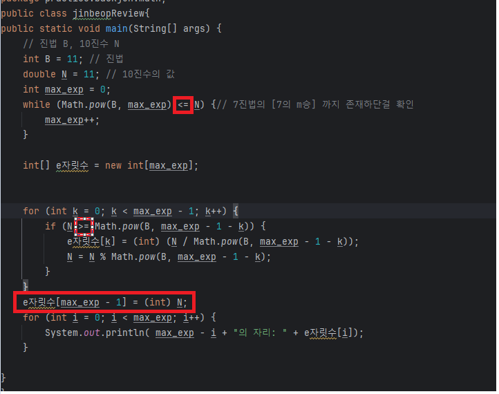 while (Math.pow(B, max_exp) < N) {// B진법의 [B의 max_exp 승] 까지 존재하단걸 확인